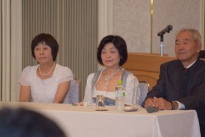 「ご飯は玄米など精製されていないものを食する」「ガン予防効果抜群の味噌汁は毎日欠かさず・・」「豆腐・納豆などの良質たんぱく質を多く摂る」「毎日たっぷりの野菜が長寿の秘訣」「お日様の恵みを受けた栄養満点の乾物をたくさん食べる」「海のミネラル豊富な海藻類をバラエティ豊かに取り込もう」「長寿食に欠かせないのが山の幸キノコ」「魚を多く食べ骨を丈夫にするのも長寿の秘訣」「世界の長寿国と呼ばれるところでは肉と言えば豚か羊(ラム)なのです」「病から体を守る果物を多く摂るのも長寿の秘訣」 等と具体的なメニューなど提示されながら楽しく話されました。質問コーナーでは多くの人が手を上げ、司会者がてんてこ舞いするほどの盛り上がりでした。