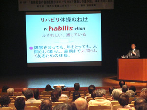 今回も、千葉県を始め、千葉県社会福祉協議会・千葉市社会福祉協議会他多くの後援を受け開催することができました。講演では、「ロコモ」を知って健康生活と題した、聖隷佐倉市民病院 関節センター長であり、ロコモチャレンジ!推進協議会委員の岸田俊二氏をお招きし、講演をおこないました。厚生省・日本整形学会が提唱する「ロコモ」は、コモシンドローム(運動器症候群)と呼び、運動器の障害のために移動機能(立つ・歩く・走る・座るなど日常生活に必要な“身体の移動に関わる機能”)の低下をきたした状態をいいます。ロコモは筋肉、骨、関節、軟骨、椎間板といった運動器のいずれか、あるいは複数に障害が起こり、歩行や日常生活に何らかの障害をきたしている状態をいいます。