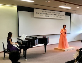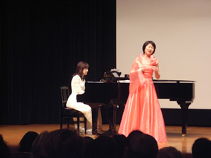 第2部はソプラノ歌手の望月清美さん・ピアニスト山本恵子さんの「ミニコンサートが行われ、マイクを使わず会場いっぱいに唄い上げる生の声とピアノの生演奏に、会場から思わず素晴らしいとの声援がとび多くの拍手に包まれました。